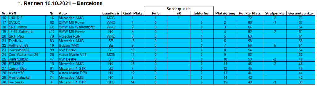 Fahrerwertung nach Lauf 3