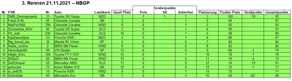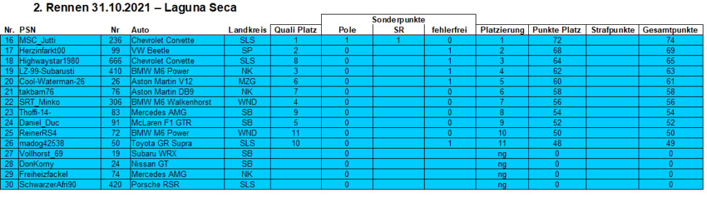 2. Lauf Saarland Liga WeatherTech Raceway Laguna Seca Liga 1 Ergebnisse Liga 2 Ergebnisse Liga 3 Ergebnisse Rennfotos